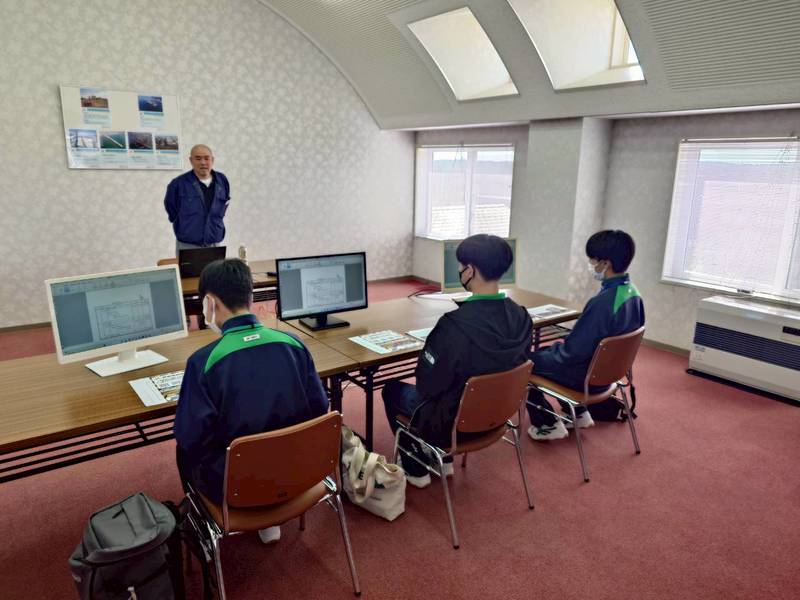 「現場では朝が早いのは大変だけど、完成した構造物が形として残るのがやりがい」といったリアルな話もあり、生徒さんたちは熱心に耳を傾けていました。