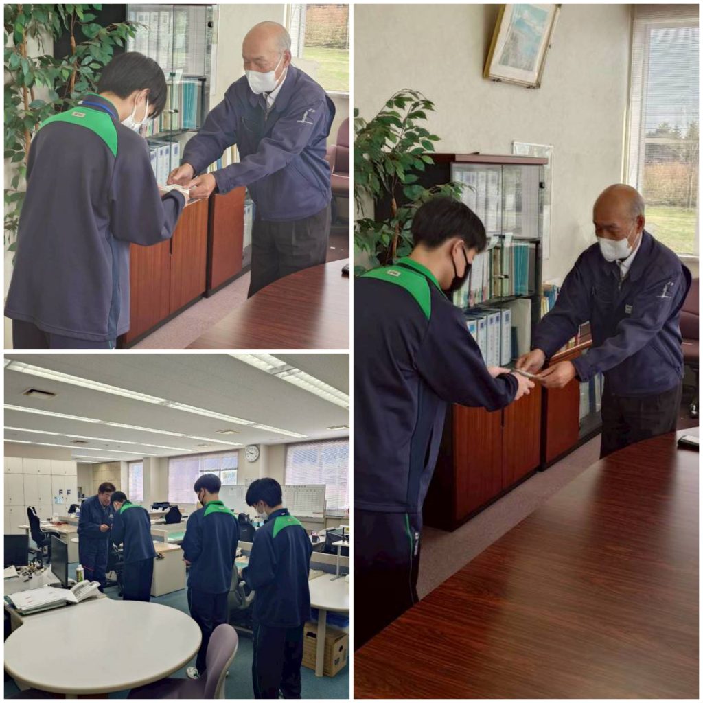 生徒同士で練習したあと、副社長や建設部次長との実践では、少し緊張しながらも丁寧に名刺を渡していました✨