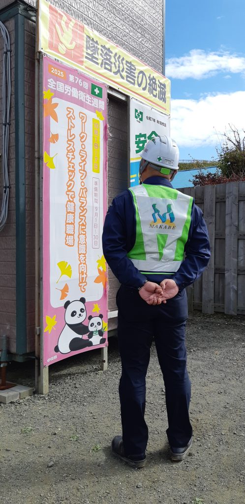 全国労働衛生週間に合わせて山下社長・専務・建設部の部長、課長が市内4現場を巡回👷